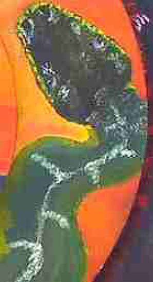 He exhaled and the sky spun and became still again. He realized that this was the way the world had always been. This was how he had always been. But way down there in his city everything was different. He watched it, and for the first time he could really see. He could hear the constant drone of talking wires, the humming and buzzing of everything. He could hear his parents still talking about how life would be good next year, and more and more not really talking about anything. Then a strange thing happened. The city began growing before his eyes, climbing up and out in all directions. Covering all the land below until soon it was everywhere, and now even here, the stars began to dim. It All became a wash of images until he realized that he was in the picture that the snake had been protecting, slowly backing out. Back out into the clearing, on the ground, holding the picture, surrounded by the snake. The boy dug down into the dirt with his fingers, and in his head he sang the bear's song. He looked closely at the picture again. He understood. And so he put the picture into the ground and covered it with dirt.